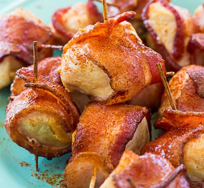 Absolutely! Preheat your oven to 400°F (200°C). Line a baking sheet with foil and place a wire rack on top (this helps the bacon crisp on the bottom). Arrange the bacon wrapped bites on the rack and bake for 18-22 minutes, flipping halfway, until the bacon is crisp and the chicken is cooked through. You may want to broil for the last 1-2 minutes for extra crispiness. - How do I prevent the bacon from burning?