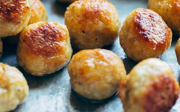- Roll the mixture into about 30 small meatballs and arrange them evenly on the prepared baking sheet.