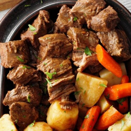 4Serve and Enjoy: Carefully ladle the tender beef, vegetables, and rich, savory sauce into shallow bowls. Garnish with a sprinkle of fresh chopped parsley for a pop of color and freshness, if desired. That’s it; dinner is served!