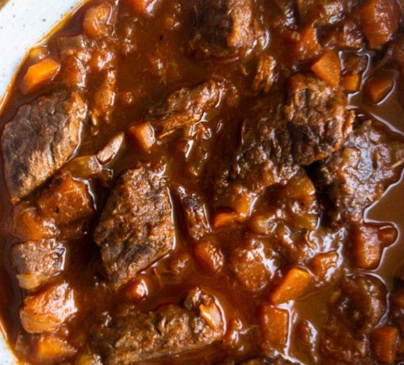 The flavor of this stew is pure, unadulterated comfort. It’s deeply savory and rich, thanks to the slow braised beef and a foundation of caramelized vegetables. The sweetness of the onions and carrots balances the umami rich tomato paste and beef broth, while a generous pour of dry red wine adds a subtle, sophisticated depth and brightness. The aroma of paprika and bay leaves weaves through every bite. This is not a spicy stew, but a profoundly seasoned one. As for texture, it’s the definition of hearty: meltingly tender chunks of beef that fall apart at the touch of a fork, soft, sweet vegetables, all swimming in a luxuriously thick, glossy gravy that begs to be sopped up with bread. It’s rustic, honest, and deeply satisfying.