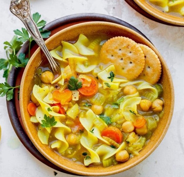 This Cozy Chickpea Noodle Soup is the ultimate hug in a bowl! If you are looking for a plant based version of the classic chicken noodle soup then you have come to the right place. This recipe is bright and flavorful and incredibly comforting. It is packed with fresh ginger and turmeric which gives it a beautiful golden color and a healthy boost that is perfect for chilly days or when you are feeling a bit under the weather.