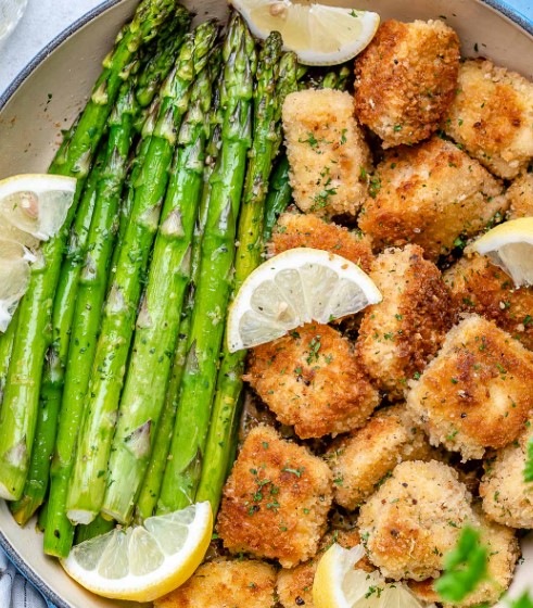 The flavor here is a beautiful harmony of savory, rich, and bright. The chicken bites develop a deeply savory, golden brown crust thanks to the garlic powder and buttery sear, while the panko breadcrumbs ensure an incredibly crispy, shatteringly good texture that gives way to juicy, tender chicken inside. The lemon asparagus is the perfect counterpoint: the spears roast until crisp tender, soaking up the pan juices, melted butter, and zesty, fresh lemon flavor that cuts through the richness. Each forkful is a perfect balance of crispy, juicy, buttery, and bright.
