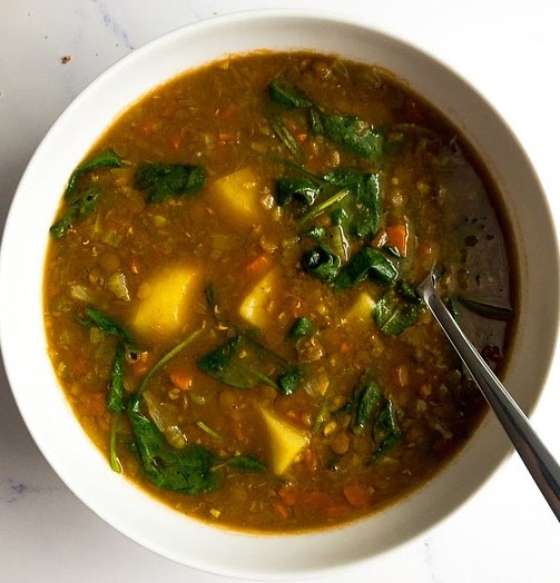 Let’s talk about the bowl of comfort you’re about to make. The foundation is a deeply savory, aromatic broth built on sautéed onions, garlic, carrots, and celery. Warm spices like curry powder, paprika, and cumin add a subtly earthy, rich, and complex flavor that feels gourmet, not spicy. The tender potatoes and green or brown lentils cook down to create a soup that’s hearty, thick, and wonderfully filling. A final stir of fresh spinach or kale adds a pop of color and a nutritious boost. It’s creamy (without any cream!), rustic, and the definition of a wholesome meal.