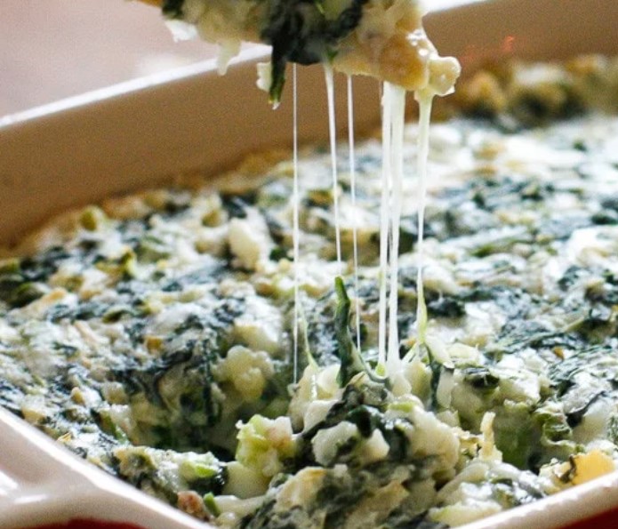 - In a bowl, combine chopped mixture, spinach, yogurt, mayo, Parmesan, mozzarella, salt, and pepper.