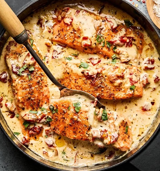 - Perfectly Balanced Flavors: The savory, garlicky cream sauce, sweet sun dried tomatoes, and herby Italian seasoning create a symphony of flavor that complements the rich salmon beautifully.