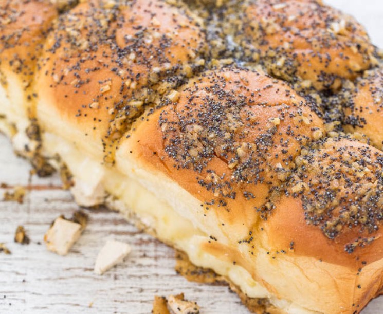 The ultimate party food! Tender, ranch coated chicken and melty Swiss cheese are nestled in soft Hawaiian rolls and baked with a buttery, savory poppy seed topping. These easy sliders are always the first to disappear at game days, potlucks, and family dinners.