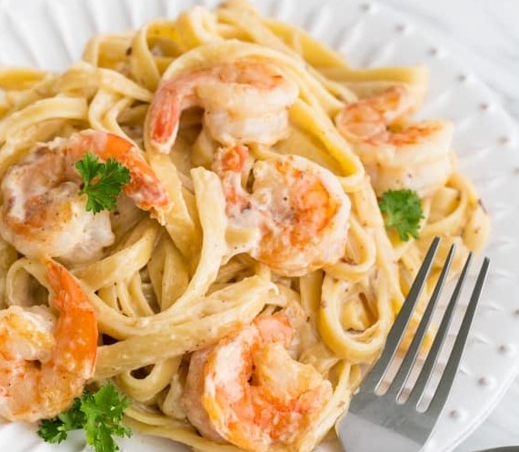 The flavor profile here is pure indulgence. You get the savory punch from the sautéed garlic and onions, a subtle brightness from the white wine reduction, and that signature nutty finish from the high quality Parmesan cheese. The texture is a beautiful contrast between the “snap” of the perfectly cooked shrimp and the “pillowy” softness of the pasta. It is comfort food at its absolute finest!