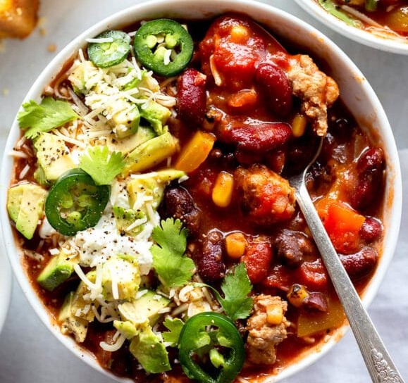 This Slow Cooker Turkey Chili recipe is the ultimate hug in a bowl. It was born out of pure necessity; one hectic Sunday when the kids had soccer, the laundry was overflowing, and the thought of cooking dinner felt overwhelming. I needed something wholesome, comforting, and, most importantly, something that could cook itself. This chili became our family’s weekly hero. It’s a lighter take on classic beef chili, simmered with lean turkey, sweet corn, two kinds of beans, and just the right kick from tamed jalapeños. The result? A rich, thick, and deeply flavorful chili that everyone, from the pickiest eater to the hungriest spouse, absolutely devours.